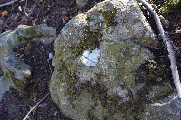 Non, mais bien plus haut, je trouve enfin une pierre marquée. Soulagement.
