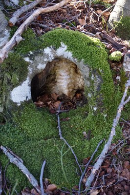 Au bord du chemin, ce tronc d'arbre ouvert présente un étrange aspect annelé.
