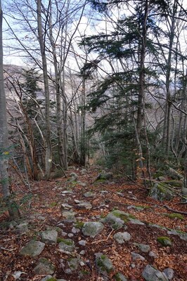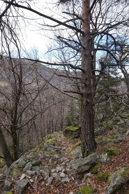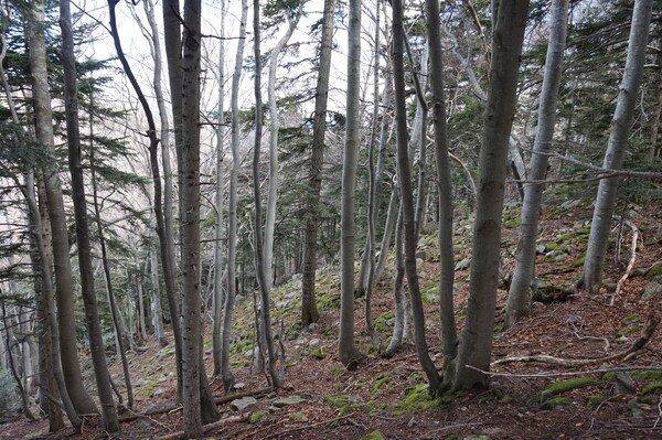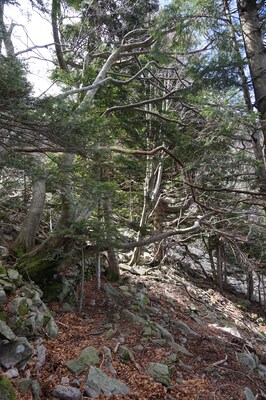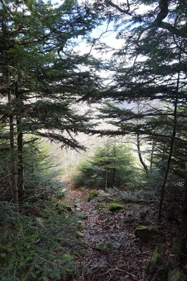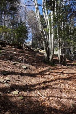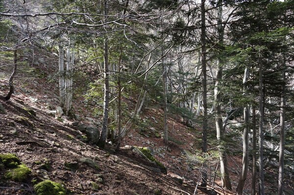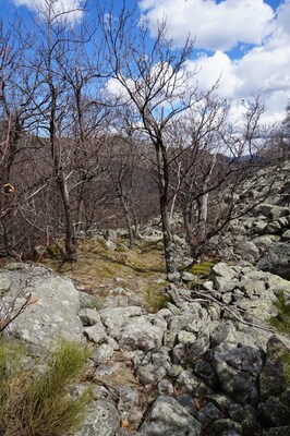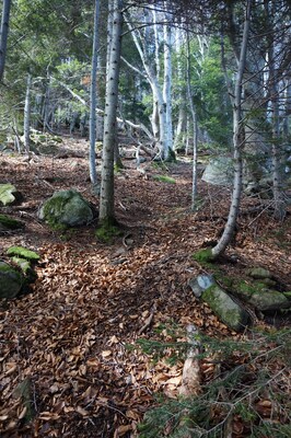 La montée est pénible à cause des nombreuses branches mortes qui craquent et