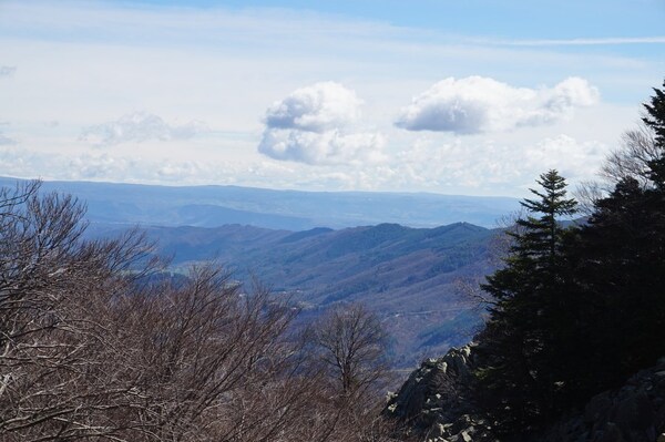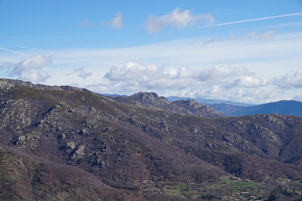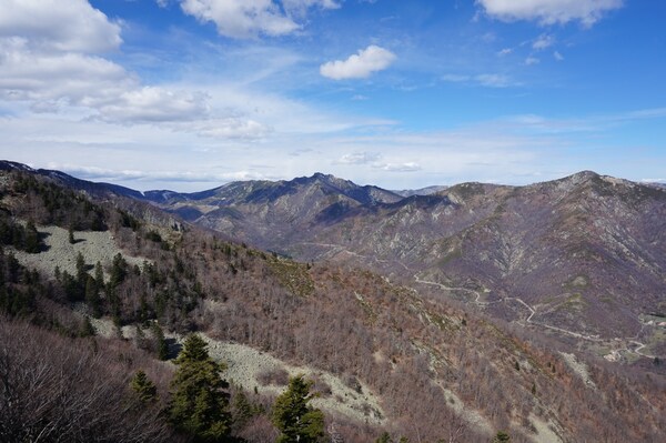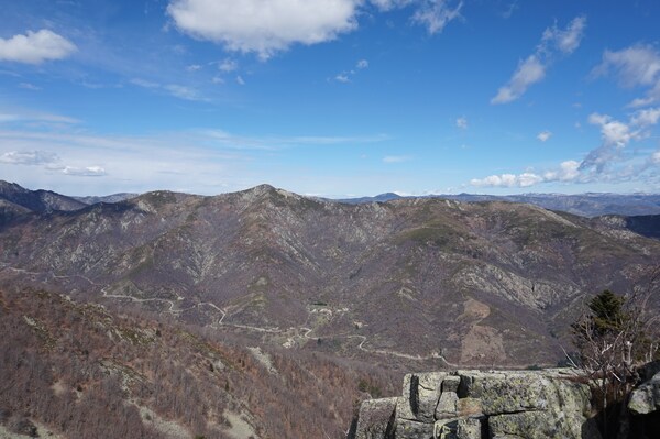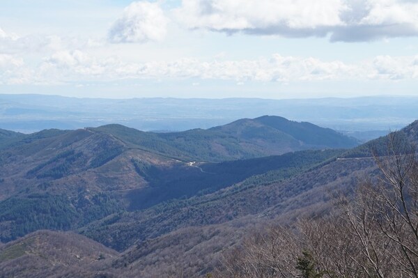 La vue vers l'ouest montre la route qui m'a amené à La Souche depuis le col de