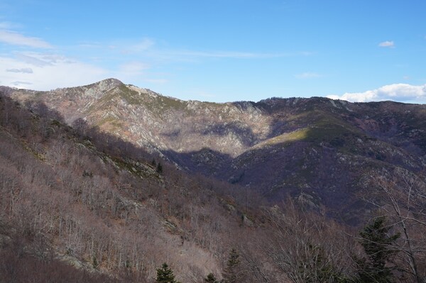 Avec le sommet de Fontfreyde au centre, apparaissent à sa droite le rocher du