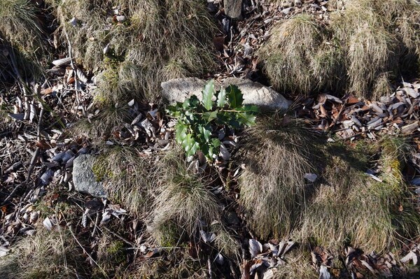 feuilles de chataîgniers, ainsi que des bogues restantes de l'automne dernier.