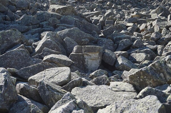 Soudain, le pierrier sur ma gauche s'orne d'une énorme roche aplatie,