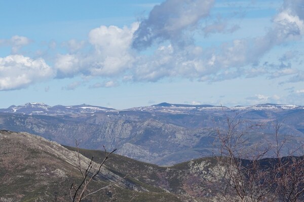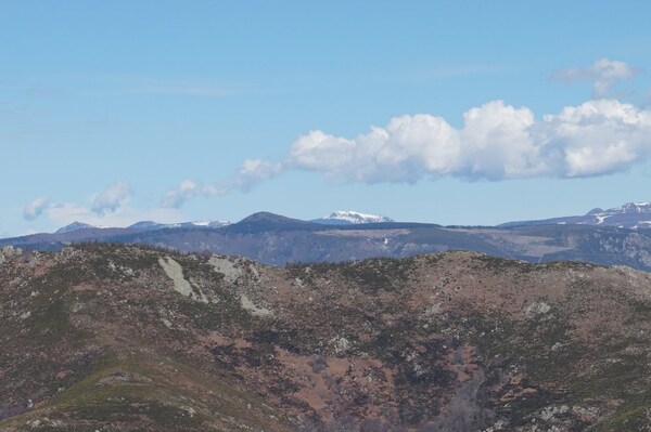 le Suc de Bauzon (plus proche) et le Mont Mézenc ; et tout à droite, le