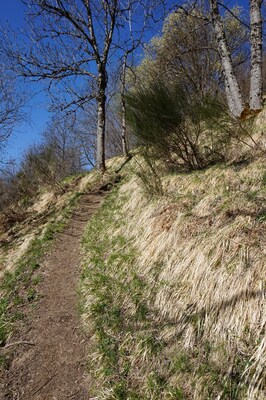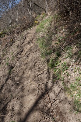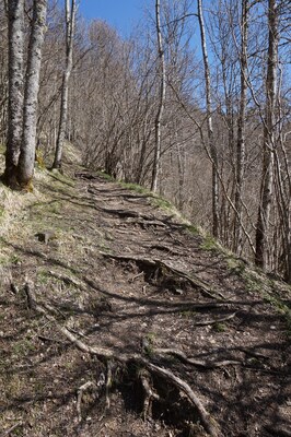 La pente est très forte dès le début, avec peu de moments de répit. Le sentier
