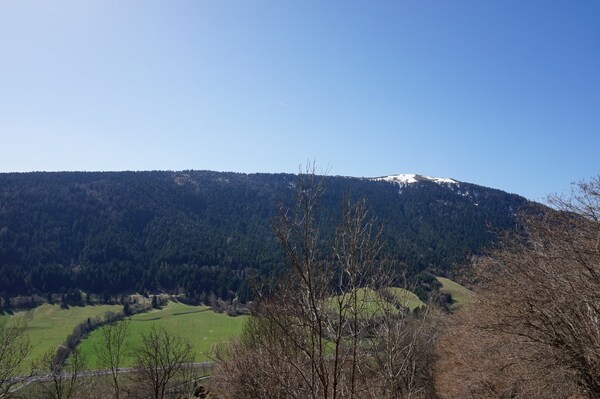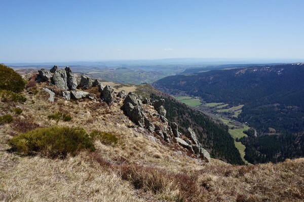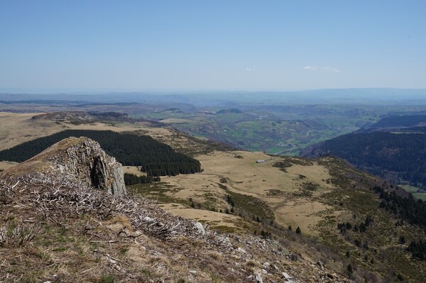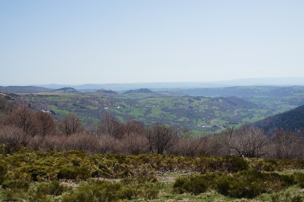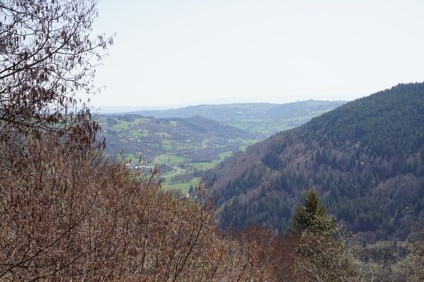 Vue sur la vallée de l'Alagnon en contrebas.
