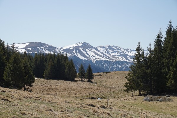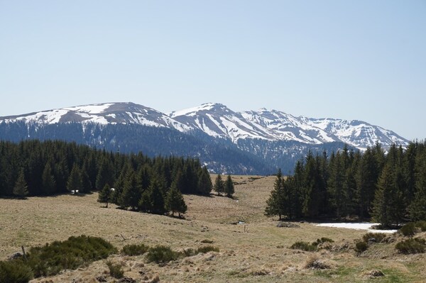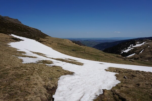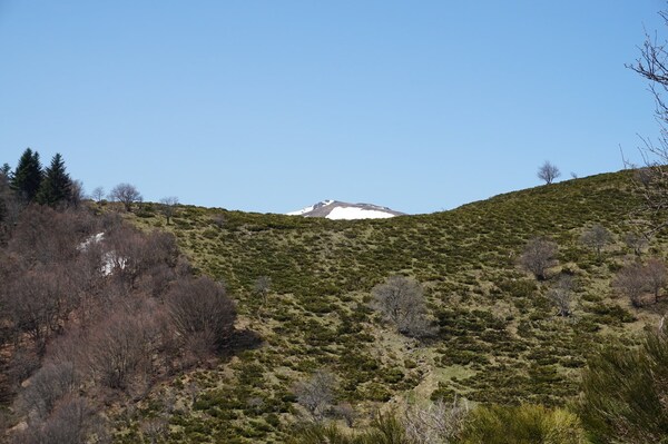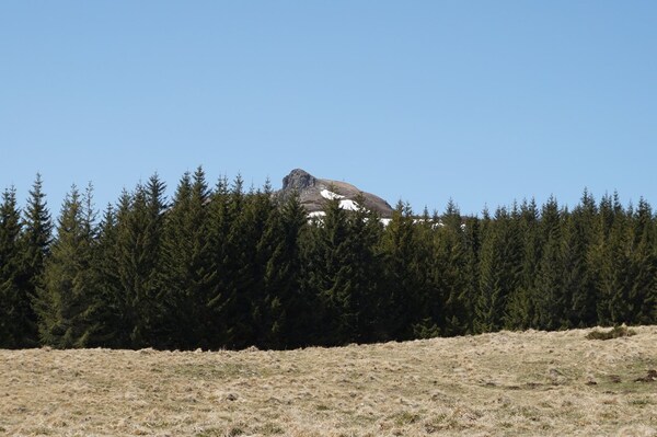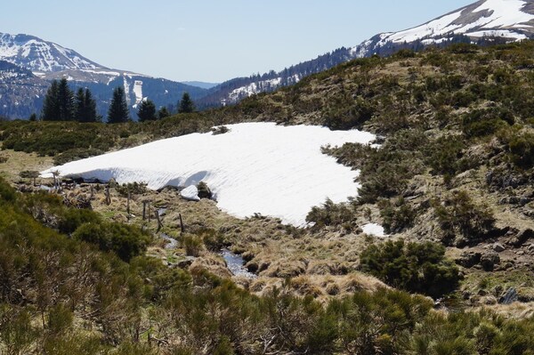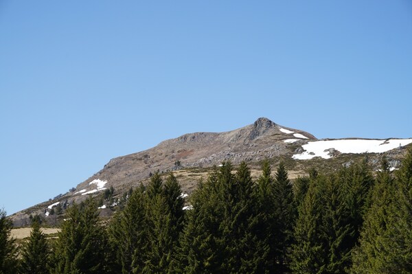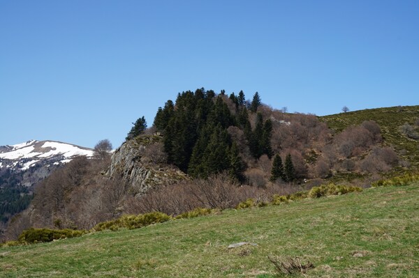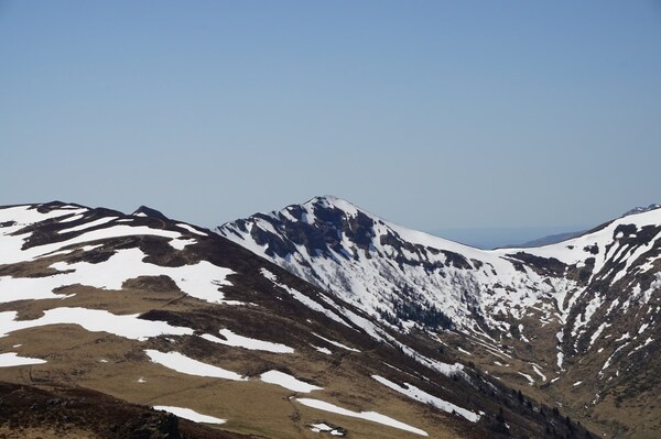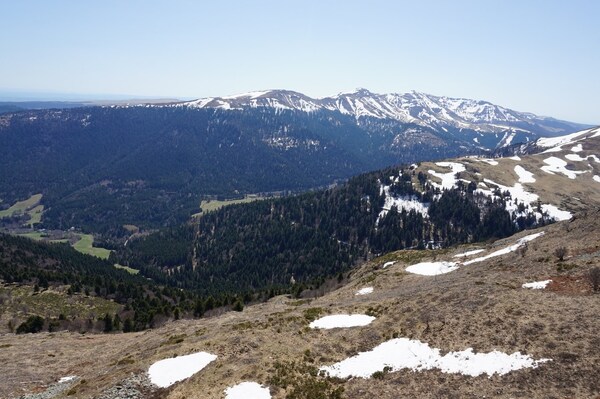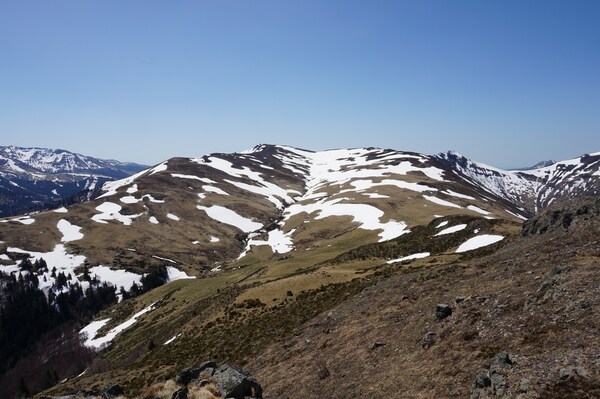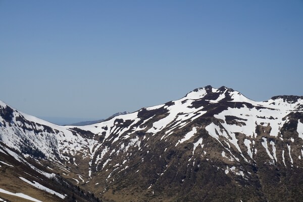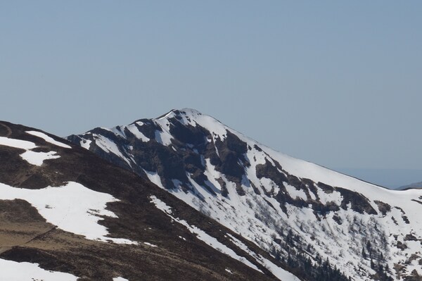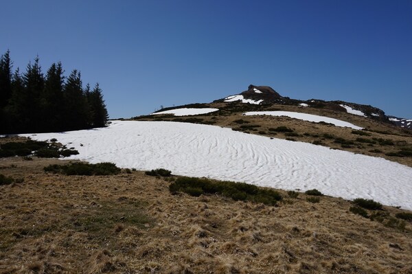 La neige restante sur le Rocher de la Sagne du Porc, le Puy du Rocher et le
