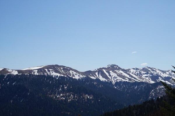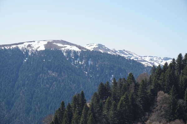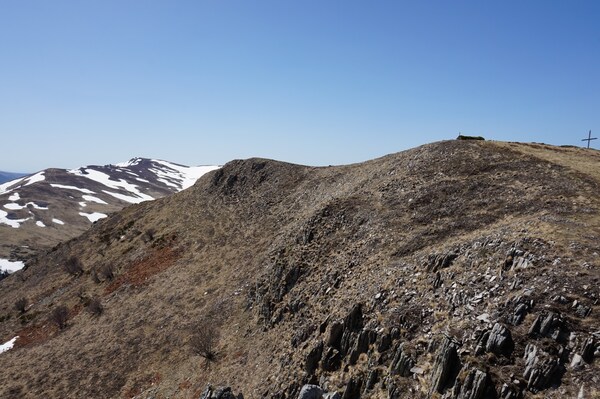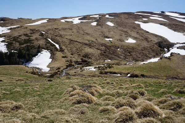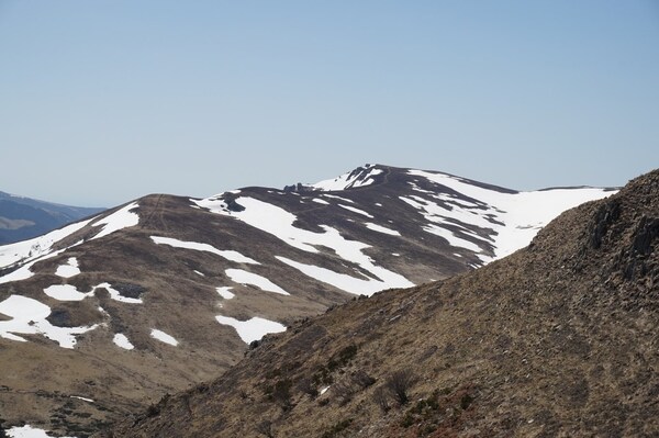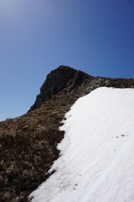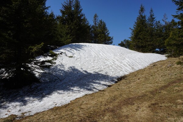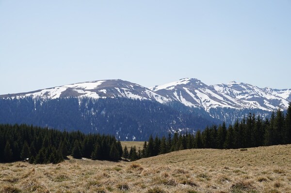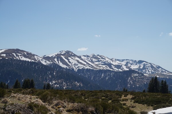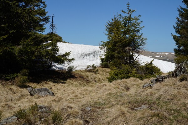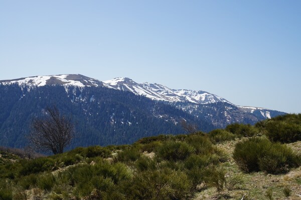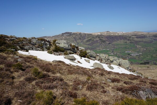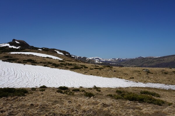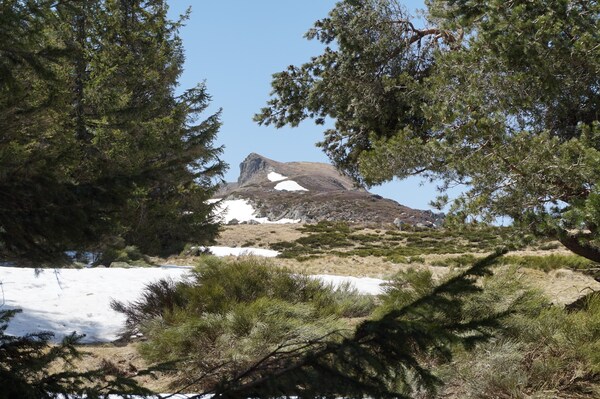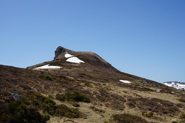 La neige restante sur le Rocher de la Sagne du Porc, le Puy du Rocher et le