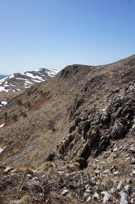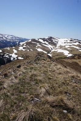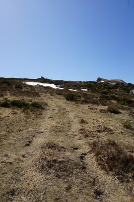 La descente s'écarte légèrement de la ligne de crête ; je passe en