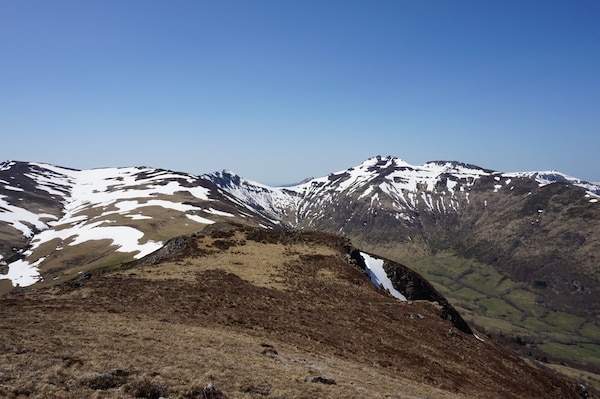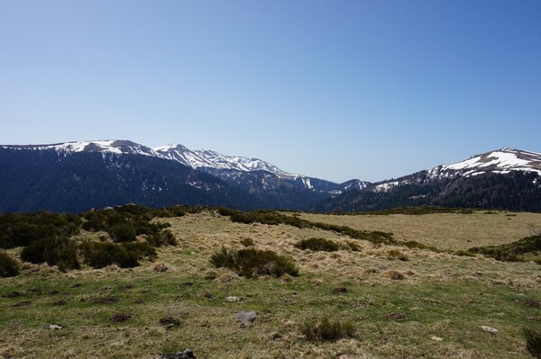 La crête du Puy de Seycheuse à droite, et celle qui mène au Rocher du Bec de