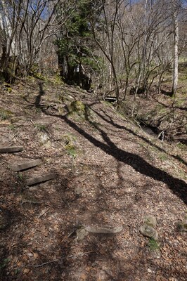Le sentier devient difficile ; sous l'effet de l'érosion il est souvent en