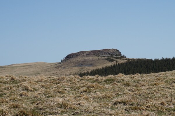 deux monticules, celui de gauche étant le rocher de Chastel-sur-Murat).