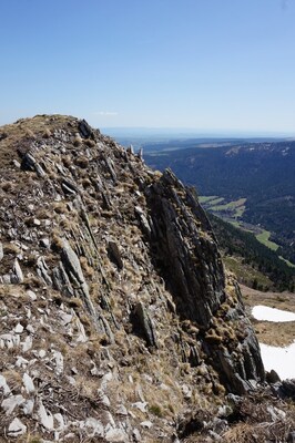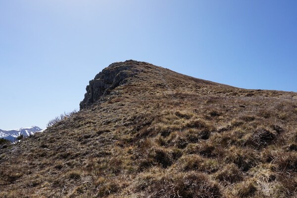 Cette ligne de crête en contrebas qui part vers la droite, conduit au Rocher du