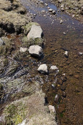 En aval du ruisseau, cette plaque de neige va lui fournir du rab.