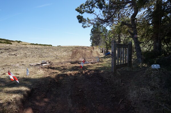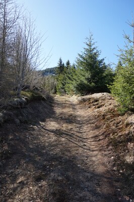 La piste remonte. Il y a cent mètres à remonter d'ici la route départementale.