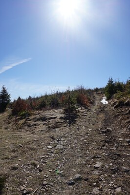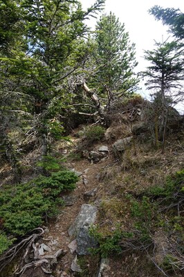 vois pas partir un sentier vers le sommet, mais comme il n'y en aucun en cet