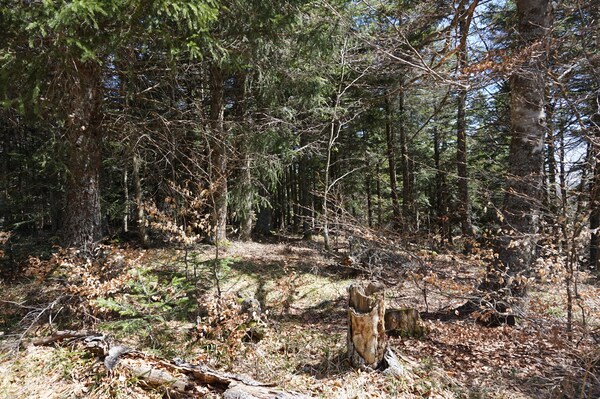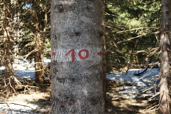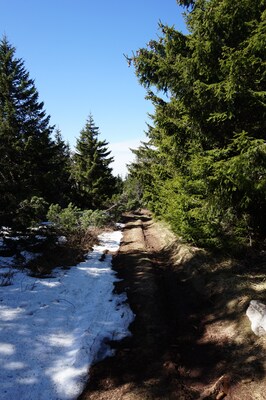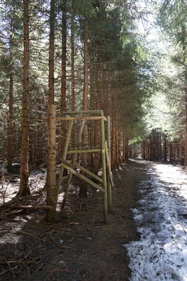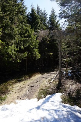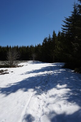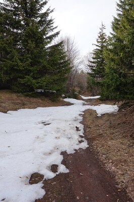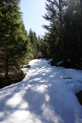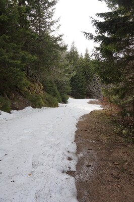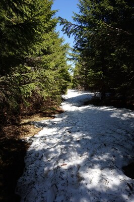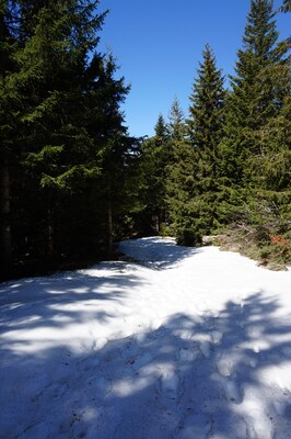 forêt, et les sentiers en forêt, faute de soleil, sont encore bien enneigés.