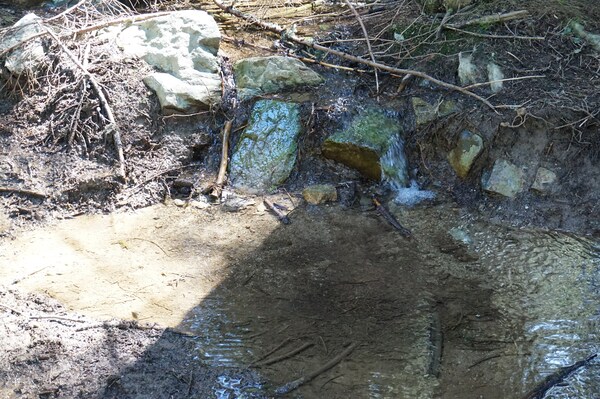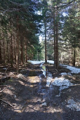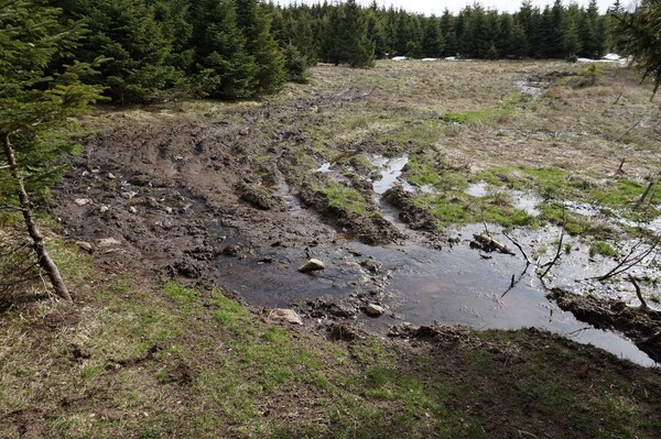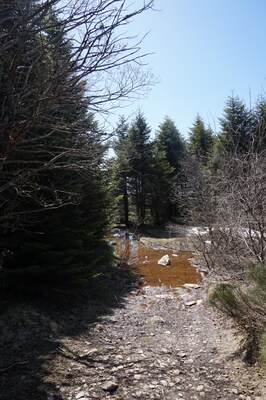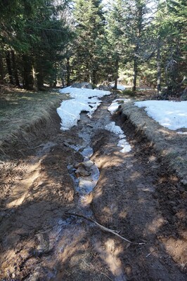 Je longe soudain une mare, sans doute causée par la fonte des neiges.