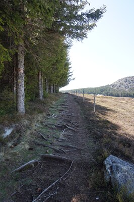 Le chemin le longe à distance, en lisière du bois.
