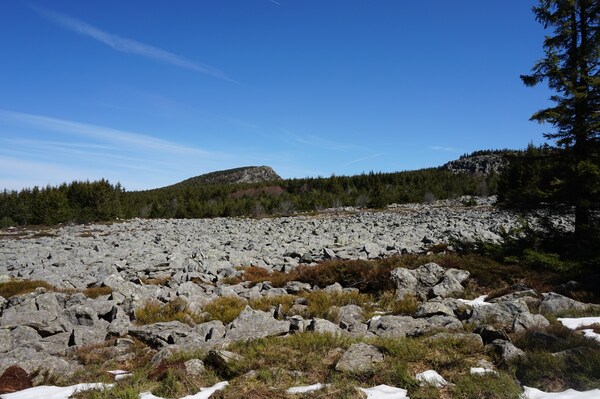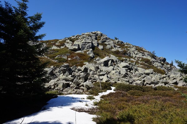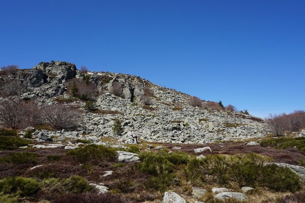 Au bord du chemin, une réunion de rochers.