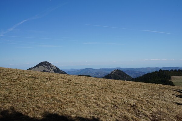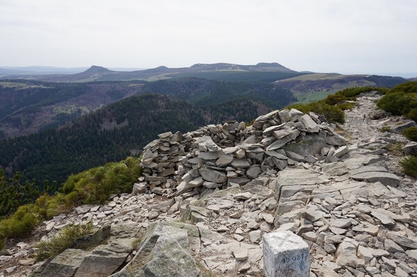 Nouveau coup d'oeil derrière moi. À l'arrière-plan, le mont Mézenc ; devant