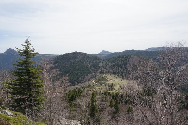 Au loin, le Sépoux, le suc de Montfol, le suc de la Lauzière et le suc de