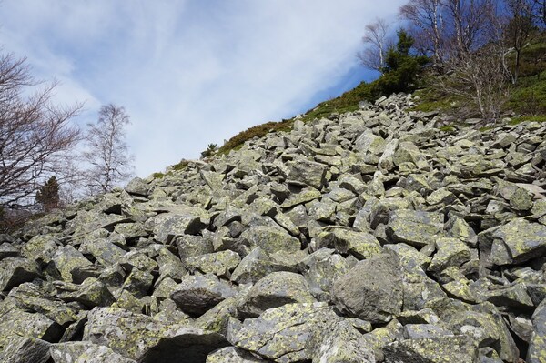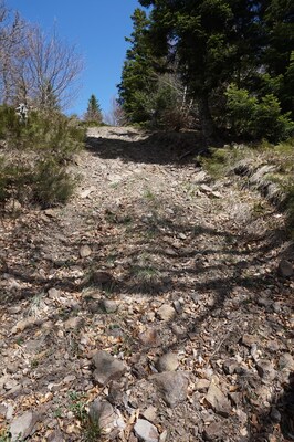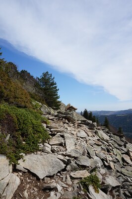 Courte traversée de pierrier, sur quelques mètres, sans aucune difficulté. Il y