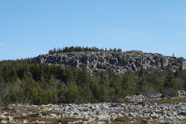 Voici le point de vue vers le nord-ouest. De gauche à droite, le rocher Tourte,