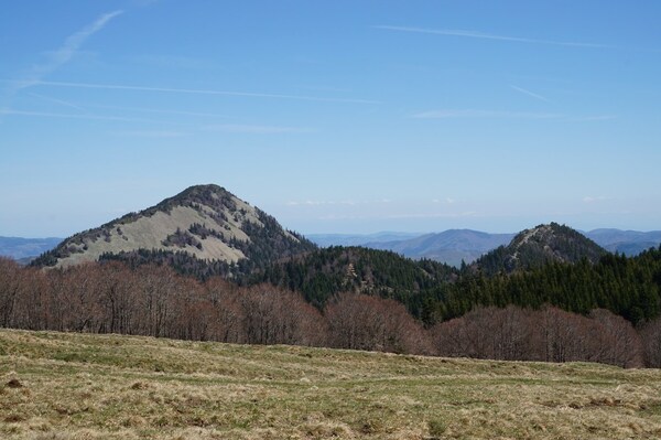 La serre du Grésier (tout à gauche), les roches des Cuzets et le mont Mézenc.