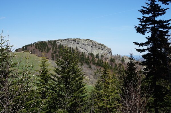 plus à gauche, le Chaulet qui dépasse des roches des Cuzets.