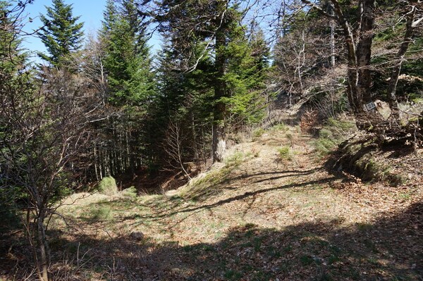 [ ajout 2024 : il y a bien un sentier, assez peu visible, qui mène