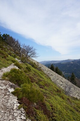 La crête est juste assez boisée pour avoir toujours l'impression que l'on est