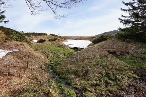J'ai donc régulièrement à enjamber les ruisseaux issus de la fonte des neiges.
