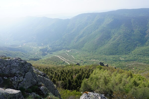 Du haut de ce petit édifice, je peux admirer la vallée de Valgorge...