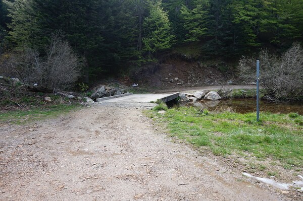 La piste traverse le Rieu Grand par un large pont.