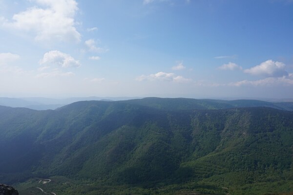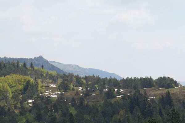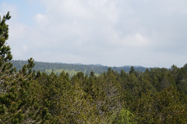 En regardant vers le nord, quelques reliefs dépassent tout juste des arbres.