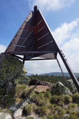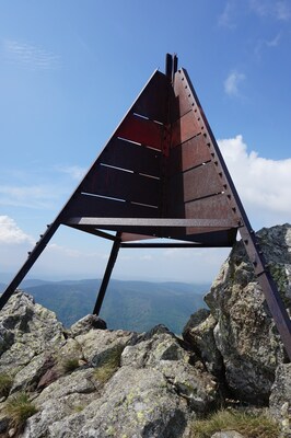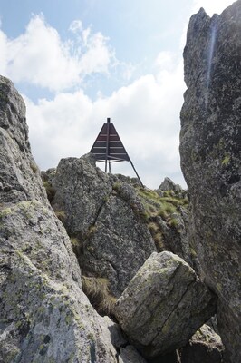 Enfin, le sommet, et sa balise géodésique pyramidale.