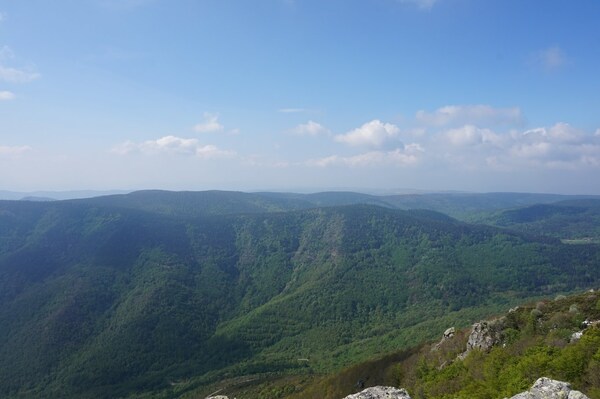 Vue vers la vallée, au sud-est.