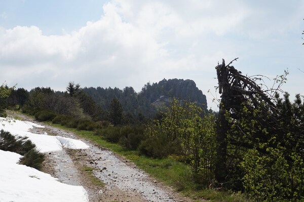 De retour au col de Meyrand, vue sur le rocher Folatier au nord.