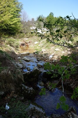 En contrebas, le Rieu Grand, qui prend sa source au Grand Tanargue pour se jeter