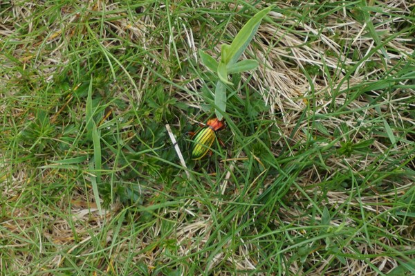 Cela ne semble pas effrayer ce carabe doré. Peut-être est-ce le même qu'à