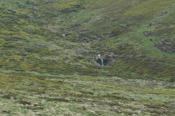 La vallée creusée par le ruisseau, avec le Mont Redon à l'arrière-plan.