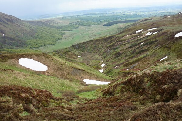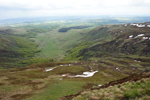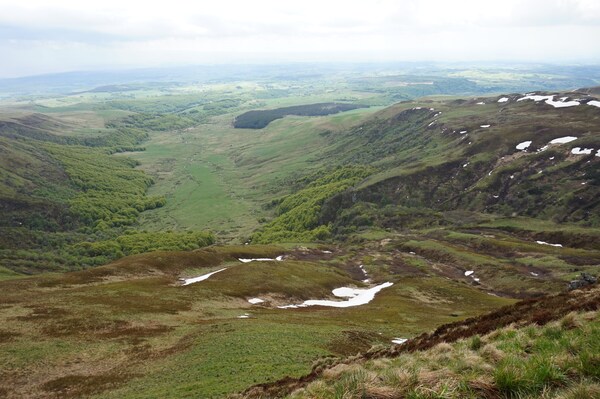 Le Val de Courre. Tout au fond, au niveau du Puy de Cliergue, la Banne