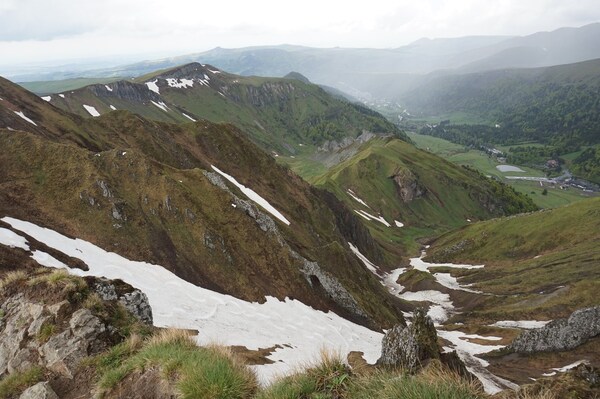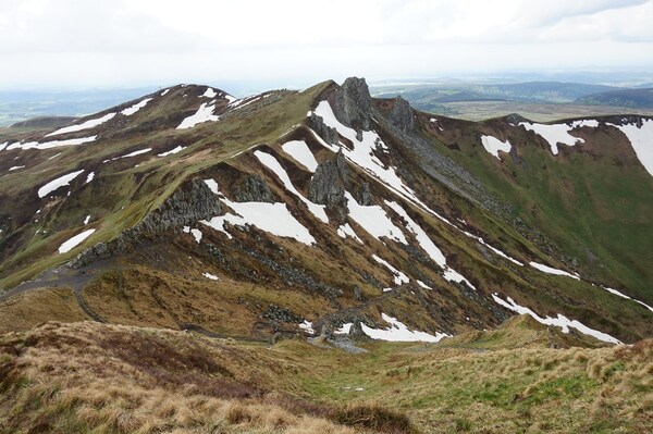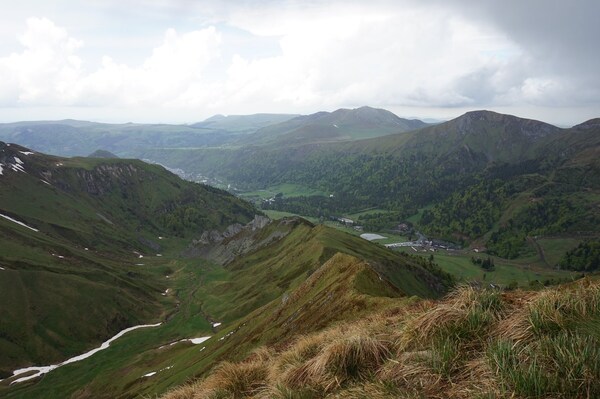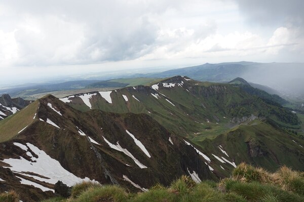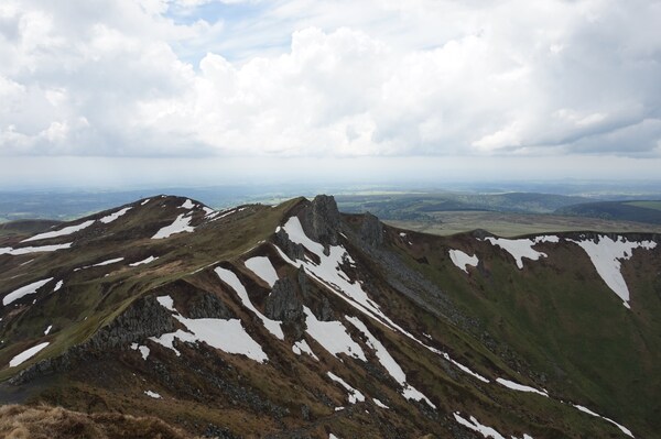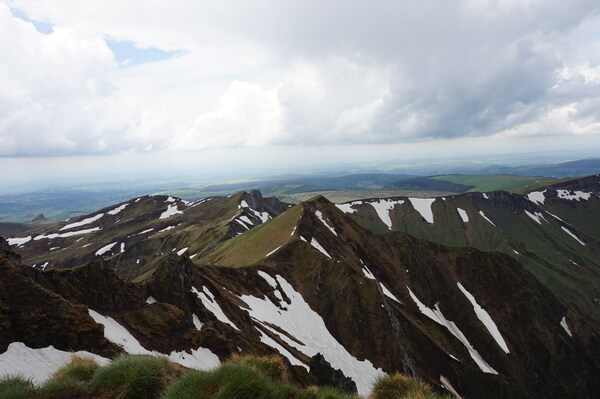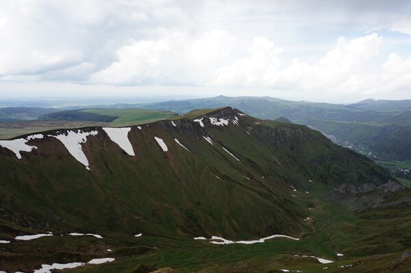 bas... Au premier plan sur la gauche, la crête docile du Puy Redon continue et