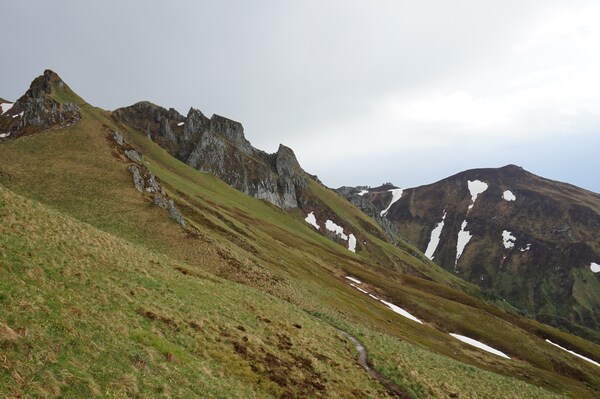 Vue du sentier joignant le Pas de l'Âne au col de Courre, passant sur le flanc