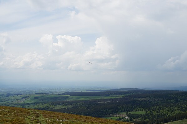Un rapace est en chasse au-dessus du Puy de Cliergue.
