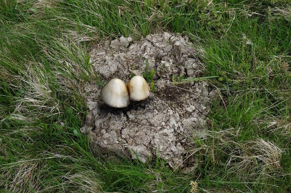 Ça et là, des coprins noirs d'encre profitent d'un bon engrais pour pousser.