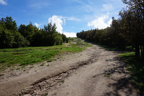 à côté de la large piste de ski à gauche, une piste bien plus étroite