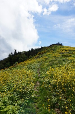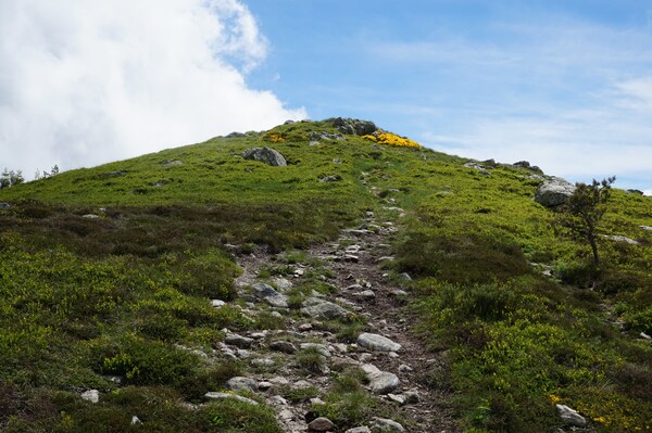 étroit permet de rester sur la ligne de crête. Je l'emprunte en me frayant un