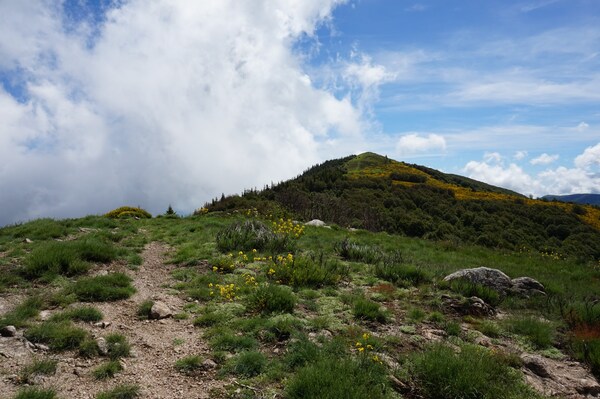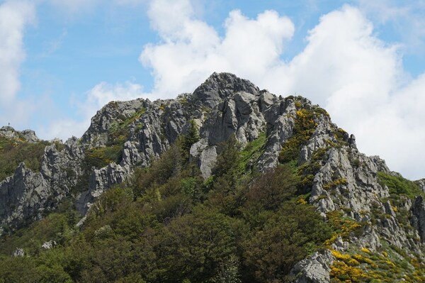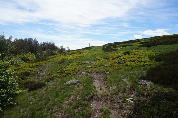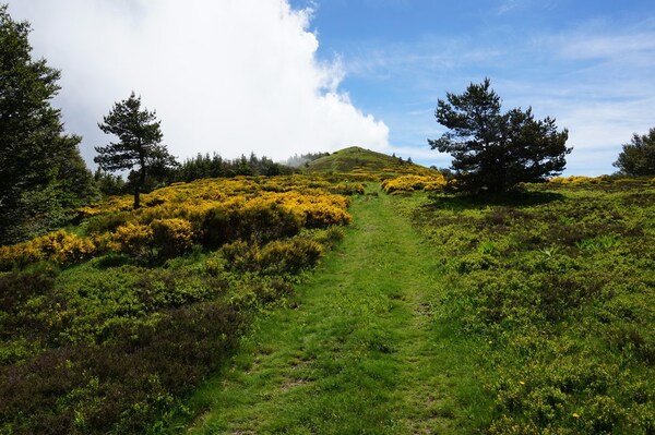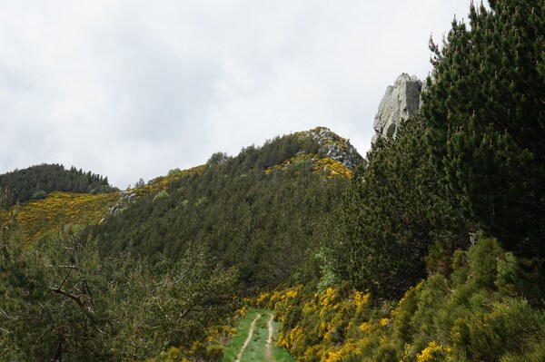 Le chemin contourne ce relief, qui se nomme le Fautouras, par le sud, à droite.